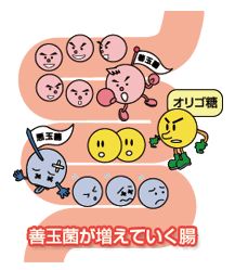 オリゴ糖はビフィズス菌の栄養素となって腸内の善玉菌を増やします。