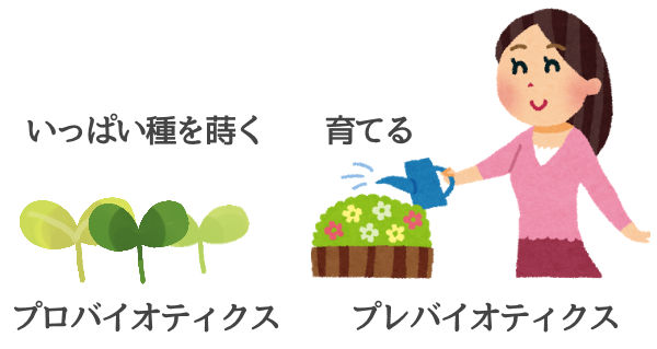 一方で、プレバイオティクスは現在腸内に存在している善玉菌のエサとなる物質を摂取し、常在菌を元気にして増殖の手助けをする方法です。