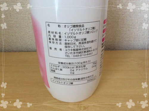 原材料はイソマルトオリゴ糖シロップとありますが、トウモロコシ、サツマイモ、じゃがいもの素材からのみ抽出したオリゴ糖なので、添加物は一切入っていません。