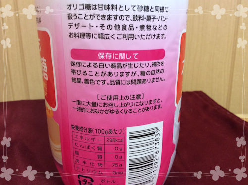 よく見ると、表示にはオリゴ糖がどのくらい入っているかの記載がなく、情報量が少ないのがちょっと不安です。