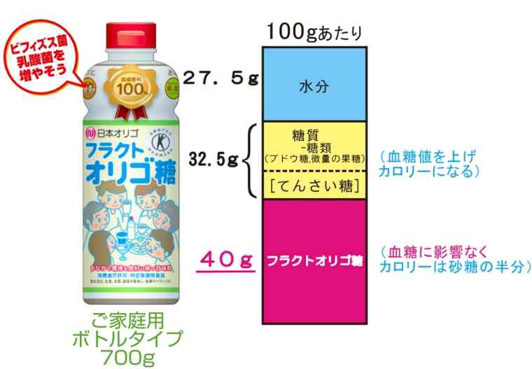 - フラクトオリゴ糖:40g←血糖値に影響なし