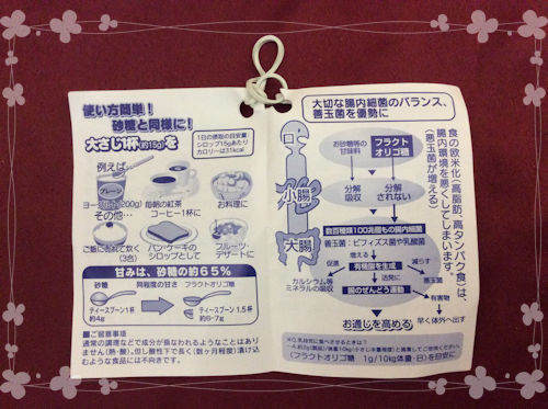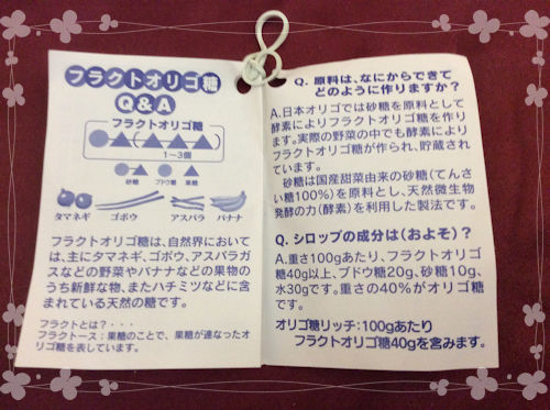 あと、驚いたのが、商品と一緒にフラクトオリゴ糖に関するミニ本がついてました!
