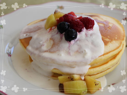 パンケーキに乗せたクリームに混ぜてみました。