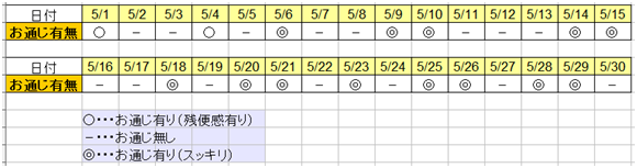 下の表は、一ヶ月間のお通じの記録です。