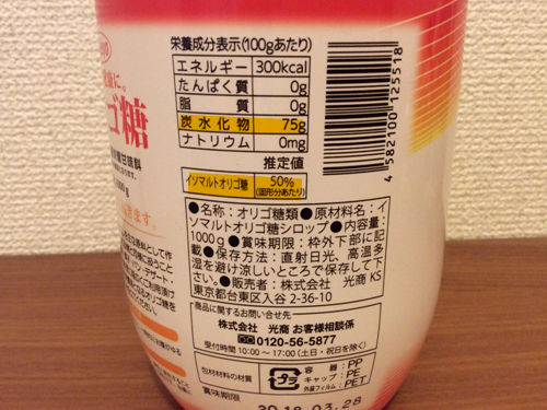他のイソマルトオリゴ糖だとドロっとした感じなのですが、光商のはサラッとした感じ。