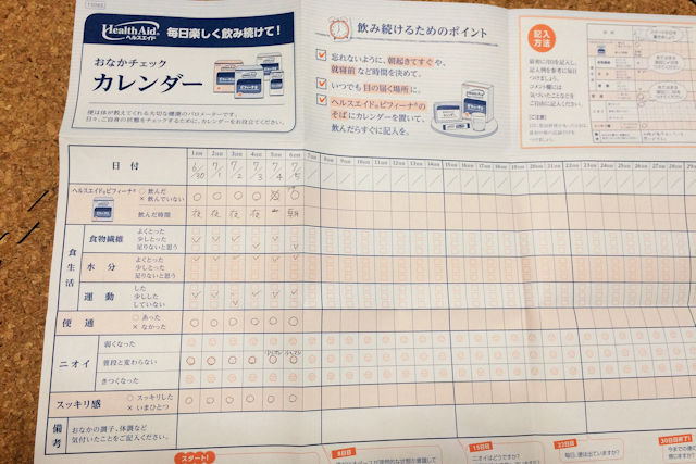 ちなみにですが、商品と一緒に付いてきた「おなかチェックカレンダー」が意外に便利だなと思いました。