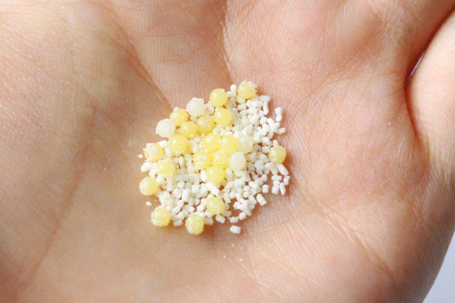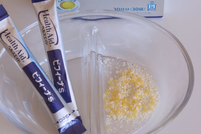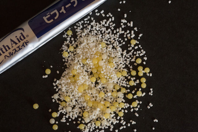 この球体こそが先述した、胃液からビフィズス菌(ロンガム種BB536)を守るカプセルです。