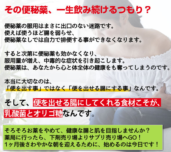 このお薬を飲んでも便秘の根本的な解決にはつながりません。
