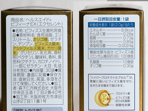 そして、こちらのカイテキオリゴとヘルスエイド®ビフィーナEXは